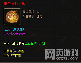 元兵有五种,每一种代表一个五行属性,如,金,木,水,火,土;佩戴哪一种属性的元兵,就激活你身上所有的某一种属性,剩余其他属性不激活,如:锐金元兵=激活金属性,其他攻击属性不激活;