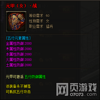 元甲只有一种,但元甲这件装备每项五行防御属性都增加;