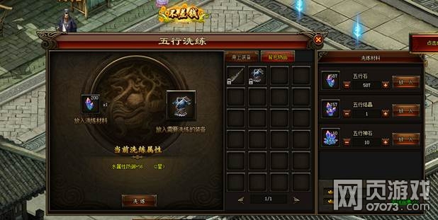 玩家可放入穿戴身上的普通装备进行洗炼,可洗炼出,金攻击,金防御,木攻击,木防御,水攻击,水防御,火攻击,火防御,土攻击,土防御;