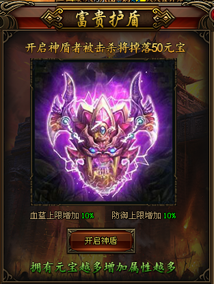 3、 身上元宝数量少于2000时,护盾失效,失去BUFF