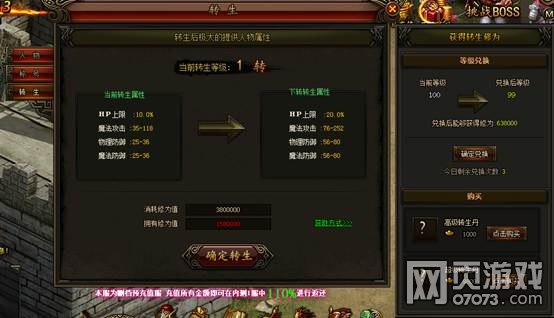 1、角色达到100级开启转生系统,转生后可获得大量属性加成