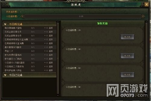 2、活跃度内容包括:每日通关副本次数、日常任务完成情况、帮会任务完成情况等等内容