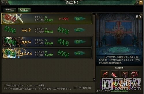 e) 野外BOSS刷新在野外场景中,需要等级达到场景最低进入等级的玩家才可进入击杀。