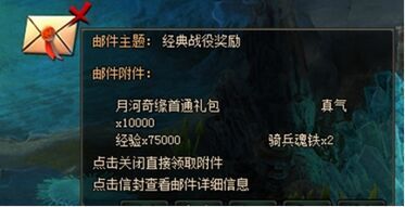 经过邮件发放的奖励,均会在操作栏上方处,显示成邮件图标效果。点击确定,就能领取属于你的那份奖励噢!