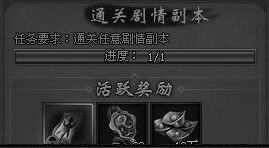 通关剧情副本1次就可以获得活跃度,剧情副本数量比较多,是根据我们在游戏中的等级提升,我们的剧情副本会一个一个的开通,我们完成1个就可以获得活跃度,其实在剧情副本中越是等级高我们获得的奖励越好,如果我们时间有限,我们可以选择等级最好的剧情副本去获取奖励。