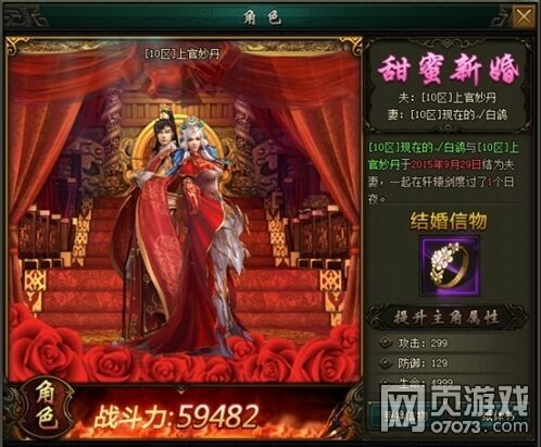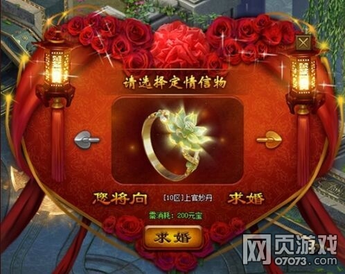 求婚成功,双方将佩带特殊的结婚对戒,为您婚姻留下见证!也为你提供大量属性加成!