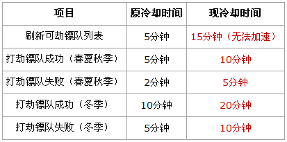 提高劫镖玩法相关的冷却时间,具体如下表