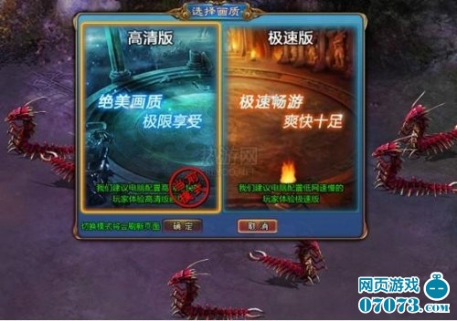 玩过玄仙传奇的童鞋一定发现上面这张截图比游戏中看到的清晰多了,蜈蚣都跃然电脑上。这是二测新版的特色——高清版。游戏中有两种模式,点击屏幕右上角可选择。网速好的当然是义不容辞地选择高清版,玩得爽,还要看得舒服。如果网络实在不行的,就来个极速版吧,一样能满足你。