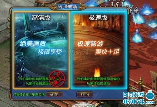 点击后你会发现有两种模式可供选择:高清版和极速版。极速版本在一测时大家都很清楚了,非常的流畅与极速,像中国经济的发展速度。不过鉴于中国30年来翻天覆地的巨变,人民生活水平极大地改善,网速也大大地提高,玄仙传奇推出高清版也是众望之所归。