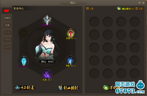 玩家等级达到43级并且通关主线任务即可开启十二剑道系统,顾名思义,就是有十二关剑道,需要通关了才会解封装备剑心的格子,并且继续挑战下一关。剑心需要手动操作剑山拔剑,每次拔剑不同属性需要消耗不同等级的铜钱,当另外还可以使用元宝拔剑,有机会开启败亡神剑,拔出品质更高的剑,来提升属性。