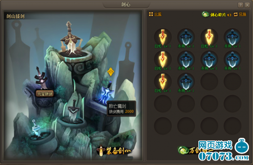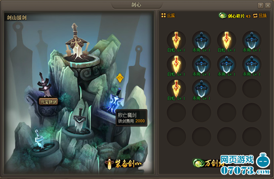 剑山拔剑会有几率拔到剑心的碎片,攒集起来,达到一定数量可以兑换所需的剑心,玩家们可以根据主角和伙伴的属性来选择装备和提升经验,当然想提高战斗力,升级剑心是不可忽略的,不要以为拥有了金色剑心就完事了,提升其等级也是相当的重要。