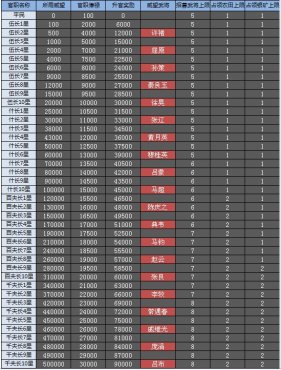 小小名将威望官职详细列表