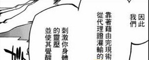 按银城的话说,每当一护触碰代理证的时候,它就会将战斗经历铭刻进自己的灵魂。那么说,代理证的灵魂包含了一护作为死神的记忆。当一护回忆他作为死神的荣耀时,代理证恰好回应一护的回忆,一护成吸取了代理证的灵魂,获得了新力量,当然这个力量就跟一护的死神之力有关,但是它不是死神之力,只是包含了死神之力。一护在使用完现术的时候就能发挥出死神的力量,比如一护练成完现术时,就使用了月牙天冲,那是斩月的技能。再来看看图六,