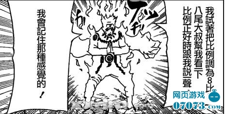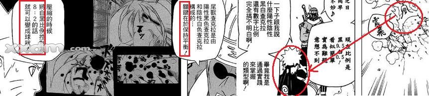 话说我们失踪已久的奇拉比大叔,是唯一一个实现尾兽化的人柱力,对尾兽玉极有心得 (刚用来轰掉地爆天星。。)。鸣人这样急切的搓尾兽玉,是不是能把脚步极慢的奇拉比大叔迅速的招来这个战场呢? 毕竟八尾曾经伤过三代雷影。。奇拉比大叔的到来,除了能帮助鸣人控制8:2的查克拉比例外,或许更能提点如何打败三代雷影呢。。