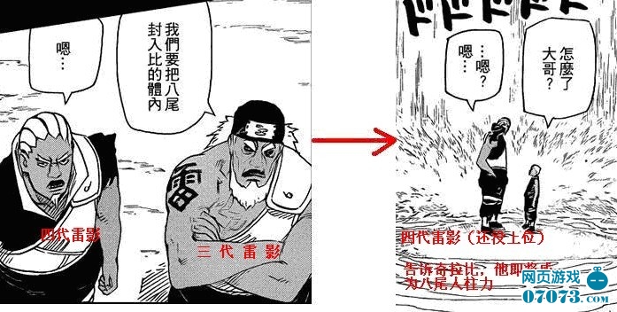 下图是年轻时代的四代雷影及奇拉比,两人在和岩忍战斗,从岩忍、四代雷影的口气来看,AB组合,应该在岩忍中大具名气。