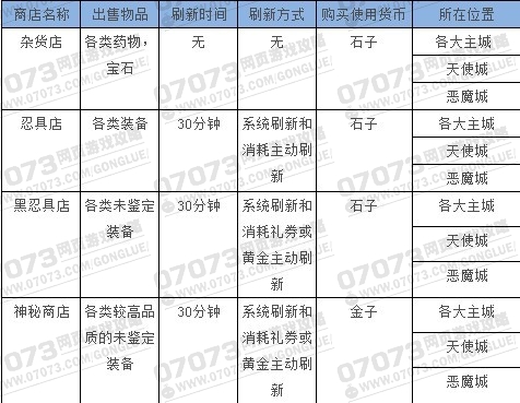游戏内的各系统商店位于各大主城和天使城以及恶魔城内,能为各位玩家们提供生存所必须的补给和基础装备支持。