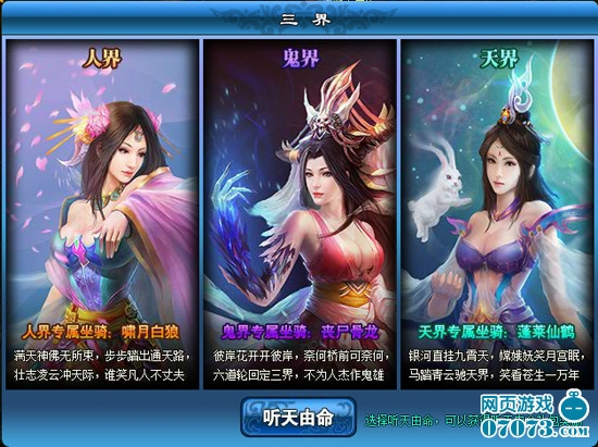 玩家达到10级之后,离开新手村需要选择你的阵营,人界、鬼界、天界任您选择,阵营选择后,玩家只能加入同阵营的帮派,如果实在不知道该选择什么阵营就听天由命吧,还会有丰厚奖励哦。