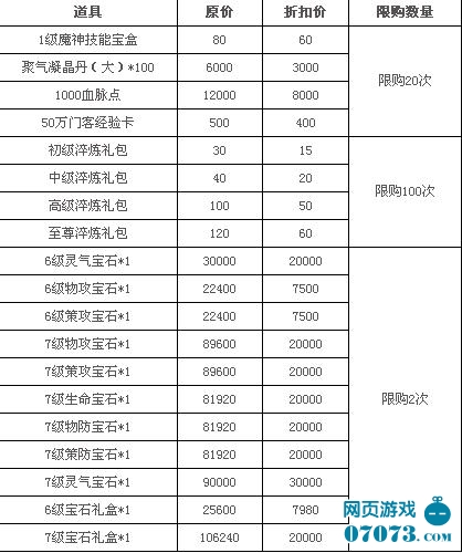 活动期间,所有物品超值打折。玩家可以以超优价格购买到丰富的奖励,每个商品每天都有限购次数,每日限购次数可重置。只限2天,千万不要错过!