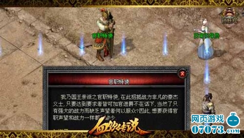《血饮传说》玩家在等级达到42级之后,主线任务即开启官职系统。在《血饮传说》主城沙盟与NPC“官职特使”对话,即可查看当前官职等级与每日可领取俸禄等信息。