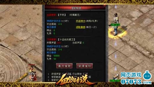 当现有声望值满足晋升官职所需声望值后,可点击晋升官职进行提升。通过日常任务与女神赐福,每日可获得大量声望值,来进行官职的升级。