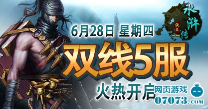 侠义水浒传双线5服将于6月28日12:00火爆开启。穿越历史长河,体验梁山好汉的豪情壮志! 喜迎新服开启,侠义水浒传已为您准备了丰富的开服活动助你在驰骋沙场、共谋替天行道之大计,救万民于水火,广播浩然天地之正气!!