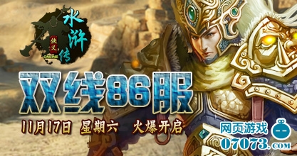 37wan《侠义水浒传》双线86服将于11月17日12:00火爆开启。穿越历史长河,体验梁山好汉的豪情壮志! 喜迎新服开启,37wan《侠义水浒传》已为您准备了丰富的开服活动助你在驰骋沙场、共谋替天行道之大计,救万民于水火,广播浩然天地之正气!!