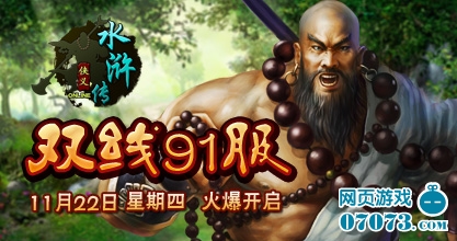 37wan《侠义水浒传》双线91服将于11月22日12:00火爆开启。穿越历史长河,体验梁山好汉的豪情壮志! 喜迎新服开启,37wan《侠义水浒传》已为您准备了丰富的开服活动助你在驰骋沙场、共谋替天行道之大计,救万民于水火,广播浩然天地之正气!!