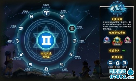 在创建界面时就引入星座概念,并以此为主题进行创建界面设定。你可以选择自己喜欢的星座,系统会根据该星座的特性,告知玩家其适合的职业、配对的星座。