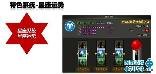 星座运势在游戏中根据玩家创建角色时所选择的星座来论定该星座玩家在游戏中产生部分特定行为的吉凶。吉凶会以BUFF的形式给予玩家。