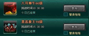 这是修为的主要来源希望新来的玩家可以积极参加,击杀BOSS第一名可以获得2000修为 第二名是1000修为 第三名800修为 4到10名是500修为 最后击退BOSS的可以得到500修为!亲们记得要参加啊!要不你不会有修为的!打BOSS是可以鼓舞的,鼓舞越高伤害越高修为也多还有银两呢!鼓舞分为灵力鼓舞和神秘符鼓舞 还可以欲火重生的,也是一样你复活的越多自然打的越多 如果各位没有时间参加BOSS可以使用替身娃娃的,它会帮你打BOSS的 不是很贵才30神秘符