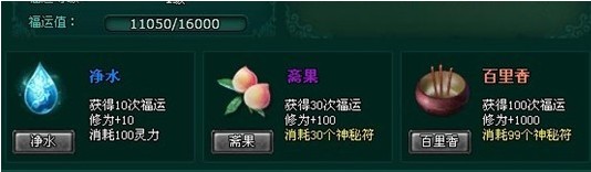 对于花钱的玩家每天进贡99神秘符可以获得1000修为 进贡30神秘符获得100修为 进贡100灵力获得10修为
