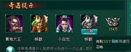 每天的10次寻仙论道,因为游戏的一再改版,个人觉得真没必要浪费RMB在刷新三星组合上,要是运气好,直接给了前面3个,个人建议直接50F召唤,要按照游戏概率你去刷新,200F都不一定刷的出来,不要觉得你能在50F内刷出,这狗血的概率会让你彻底崩溃的。