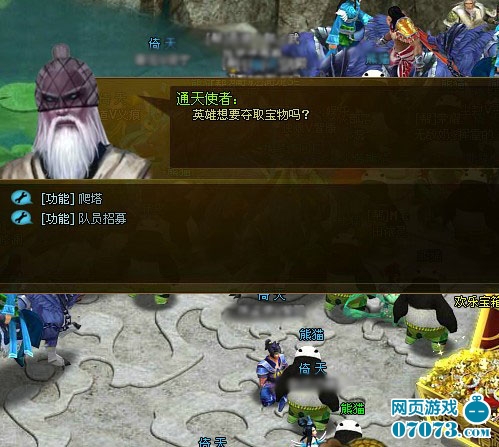 《倚天》世界的通天峰是获取各种宝石、各种等级的装备、经验等的地方。有缘人登上通天峰将会获取大量宝物和经验。