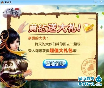 玩家在登录QQ时,如果QQ此前有进入过倚天游戏创建了角色。会随机收到系统的弹窗提示