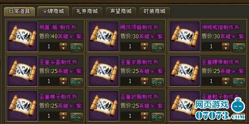 1.所有的装备制作书均可在令牌商城处购买: