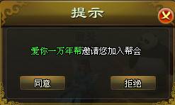 被邀请玩家会出现如下提示界面(点击“同意”即可加入帮会)如图