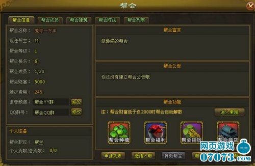 3. 当帮会等级为等于1级并且帮会财富小于等于负2000时,帮会自动解散。