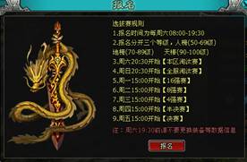 8. 本服内天、地、人榜各分排前10名的玩家(共计:30名)将进入下一阶段比赛→全服淘汰赛