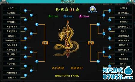 将全服天、地、人三榜的30名玩家(本服晋级者)按级别组安排比赛,每个级别组选出最强的32名参与下周一举行的16强比赛(积分规则与本服淘汰赛规则一致)