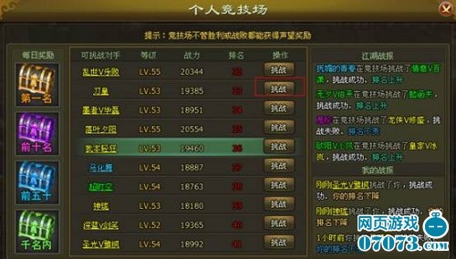 玩家挑战目标成功后取代目标的排行,被击败的玩家替换挑战玩家的排名。相互进行对换