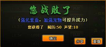 玩家每次挑战成功,都将获得20点声望,挑战失败获得10点声望。