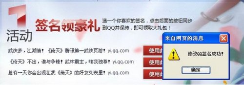 活动一、签名领取好礼 在确认登录的Q号无误后,就可以在活动界面上,选一个你喜欢的签名,点击后面的按钮同步到QQ并保持同一签名达到一定的天数后,即可领取大礼包!