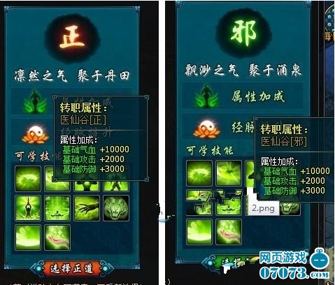 二、完成第三步之后会出来选择转正还是转邪的选择页面,转正或转邪增加的基础属性是一样的。