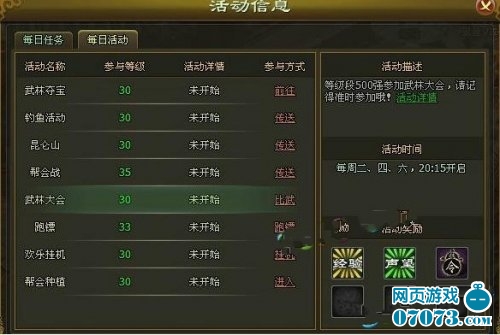 3. 武林大会和帮战,玩家参加武林大会和帮会战,可获得300以上的声望。