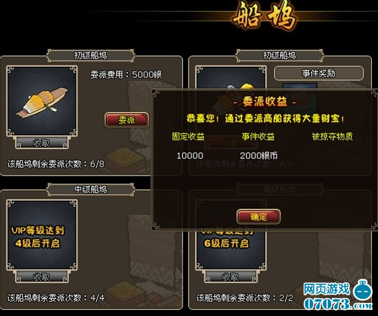 除此还可以通过船坞委派商船出海、战役关卡胜利或者完成任务,可以获得丰厚的银两奖励,也可以出售不需要的装备道具换取银币。