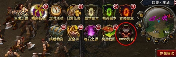 1、开启boss列表:当玩家完成36级主线任务时,系统会在游戏界面右上方开启“boss列表”图标,如图位置: