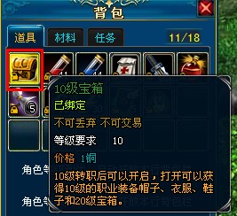11、 当人物等级到达10级、20级、30级、40级、50级时,别忘了打开背包里的等级宝箱哦!