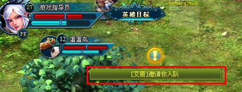 14、 当界面左上角、人物头像旁出现了“!”时(如图9),一定要点击哦,不然您可能会错过一些组队邀请、或者其他玩家给您发的聊天信息哦。