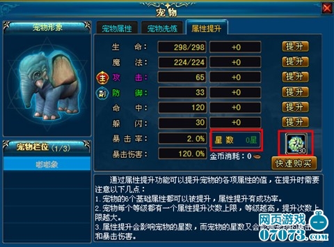 属性提升——在此您可以提升宠物的六大基本属性以及宠物的星级,即“宠物升星”