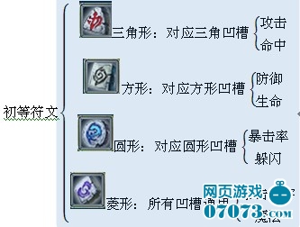 初等符文的形状是固定不能改变的,与武器装备上镶嵌槽的形状一一对应,